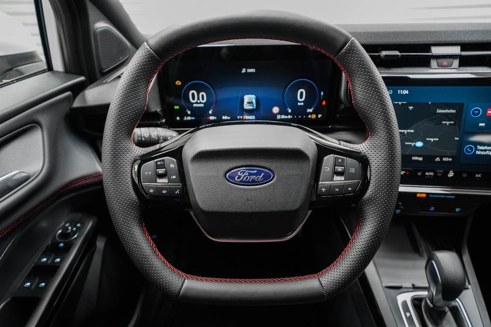 Fahrersitz höhenverstellbar, Sitzbezug Stoff, Lenkrad höhenverstellbar, Beheizbares Lenkrad, Multifunktionslenkrad, Isofix, 17 Zoll Alufelgen, ABS, Außenspiegel elektrisch, Fensterheber elektrisch, Klimaautomatik, Seitenairbags, Servolenkung, Sitzheizung, ESP, Tempomat, Wegfahrsperre, Zentralverriegelung mit Funk, Außenspiegel beheizbar, Beifahrerairbag, Fahrerairbag, Parkpilot hinten, Reifendruckkontrolle, Spurhalteassistent, LED-Scheinwerfer, LED-Tagfahrlicht, Rückfahrkamera, StartStopSystem, Notrufsystem, Android Auto, Apple Carplay, Freisprecheinrichtung, USB, Radio, Radio DAB, Bluetooth, Bordcomputer, Navigationssystem 12.8 Zoll SYNC 4,